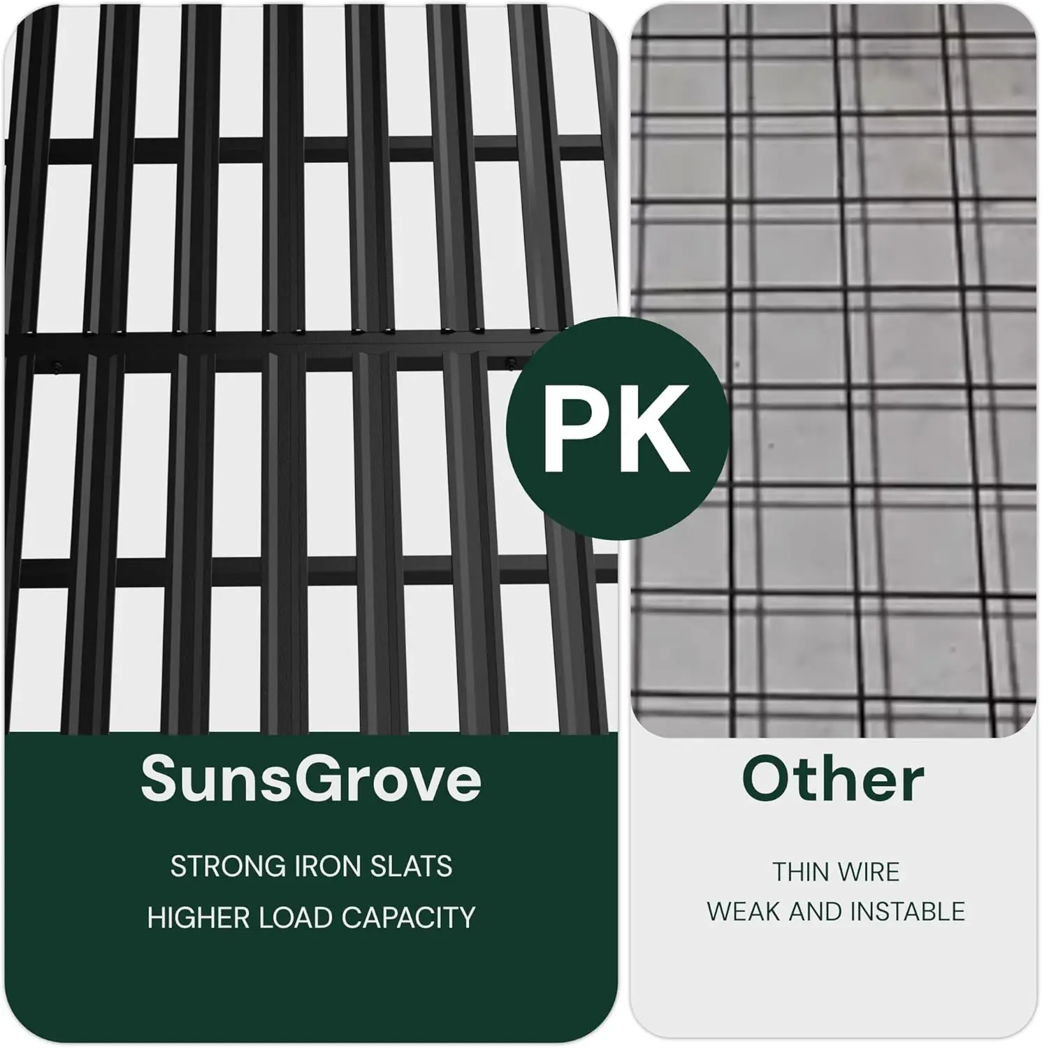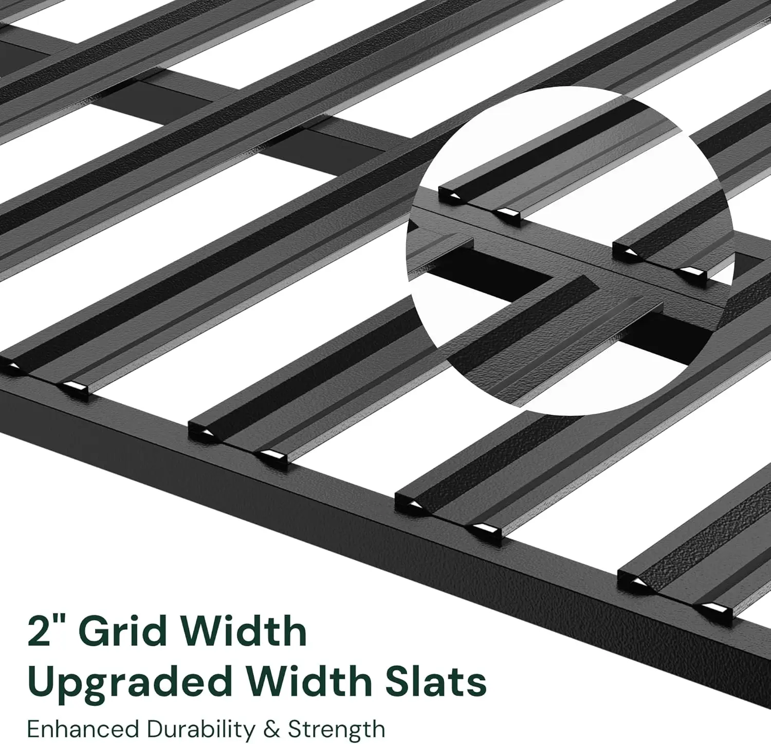 The grid of our garage storage rack ceiling features 2 inch wide slats instead of the common wire design for greatly improved stability. The panel consists of a grid-like pattern with a series of parallel bars that provide a sturdy base.