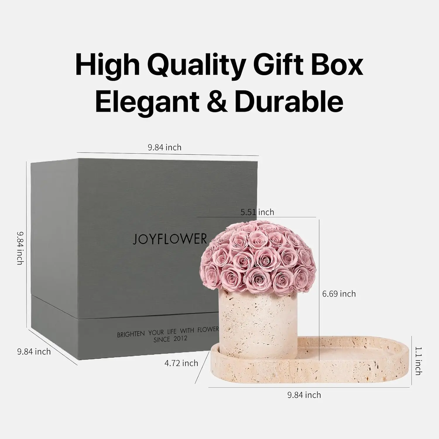 Elegantly Preserved Roses with Travertine Stone Vase and Tray
