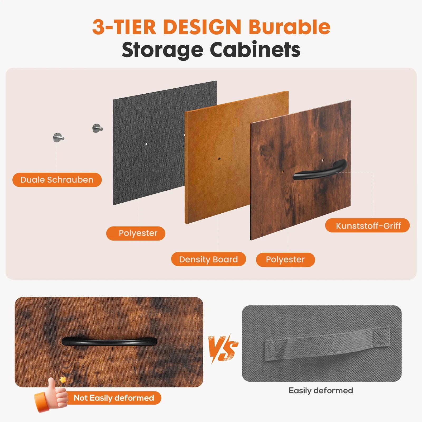 Lightweight Wardrobe with Fabric Drawers, Steel Frame and Solid Wood Top