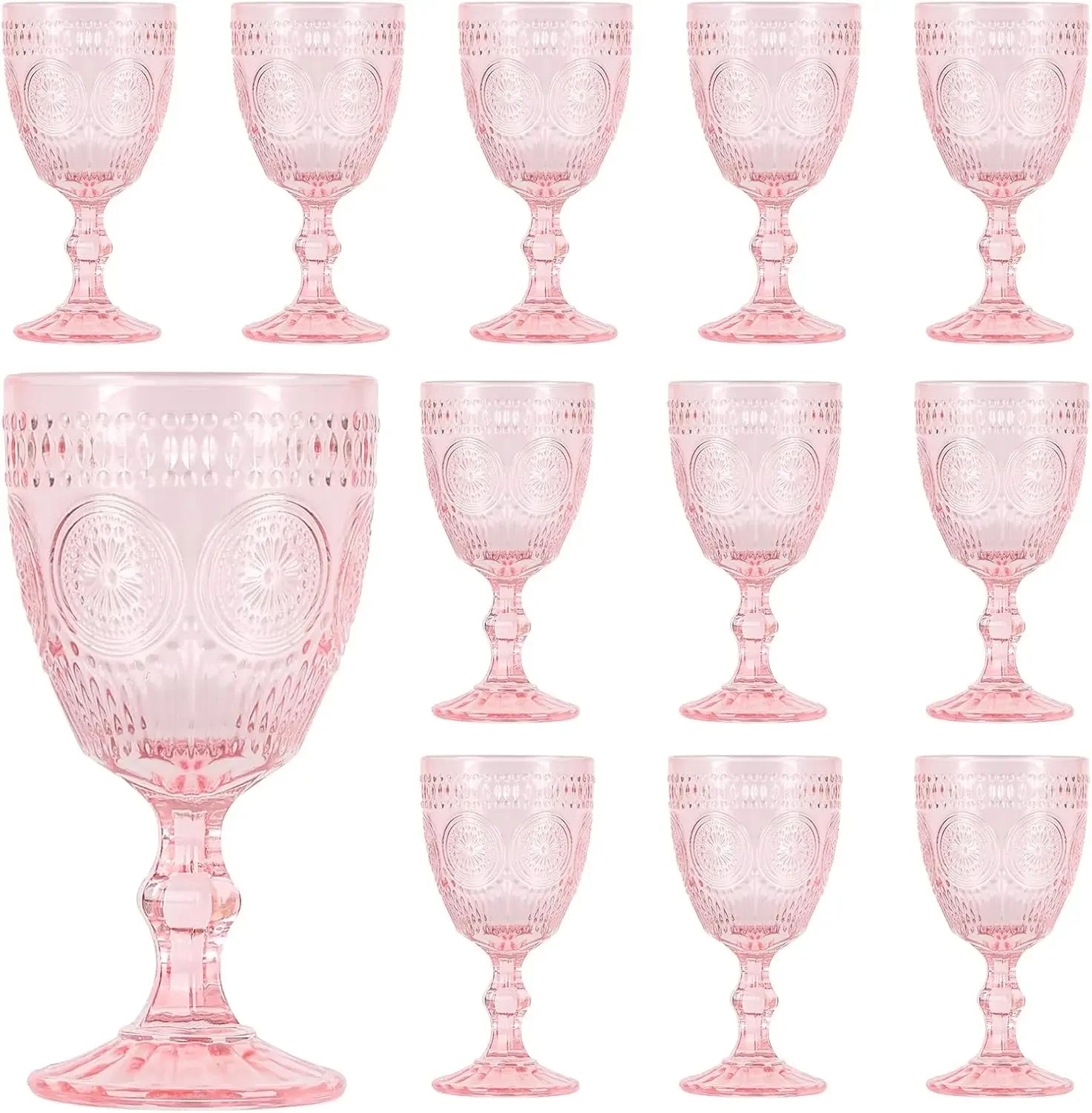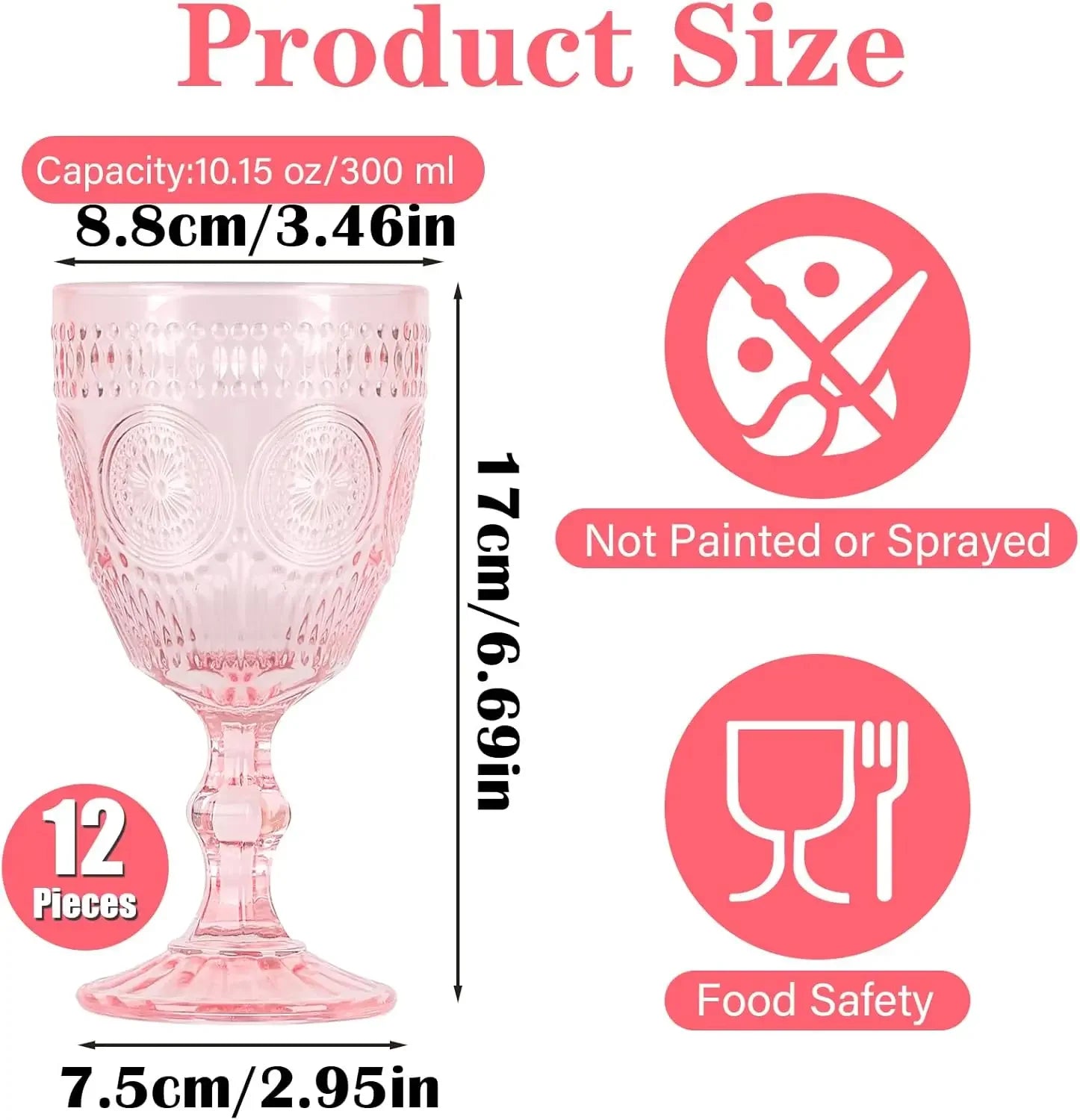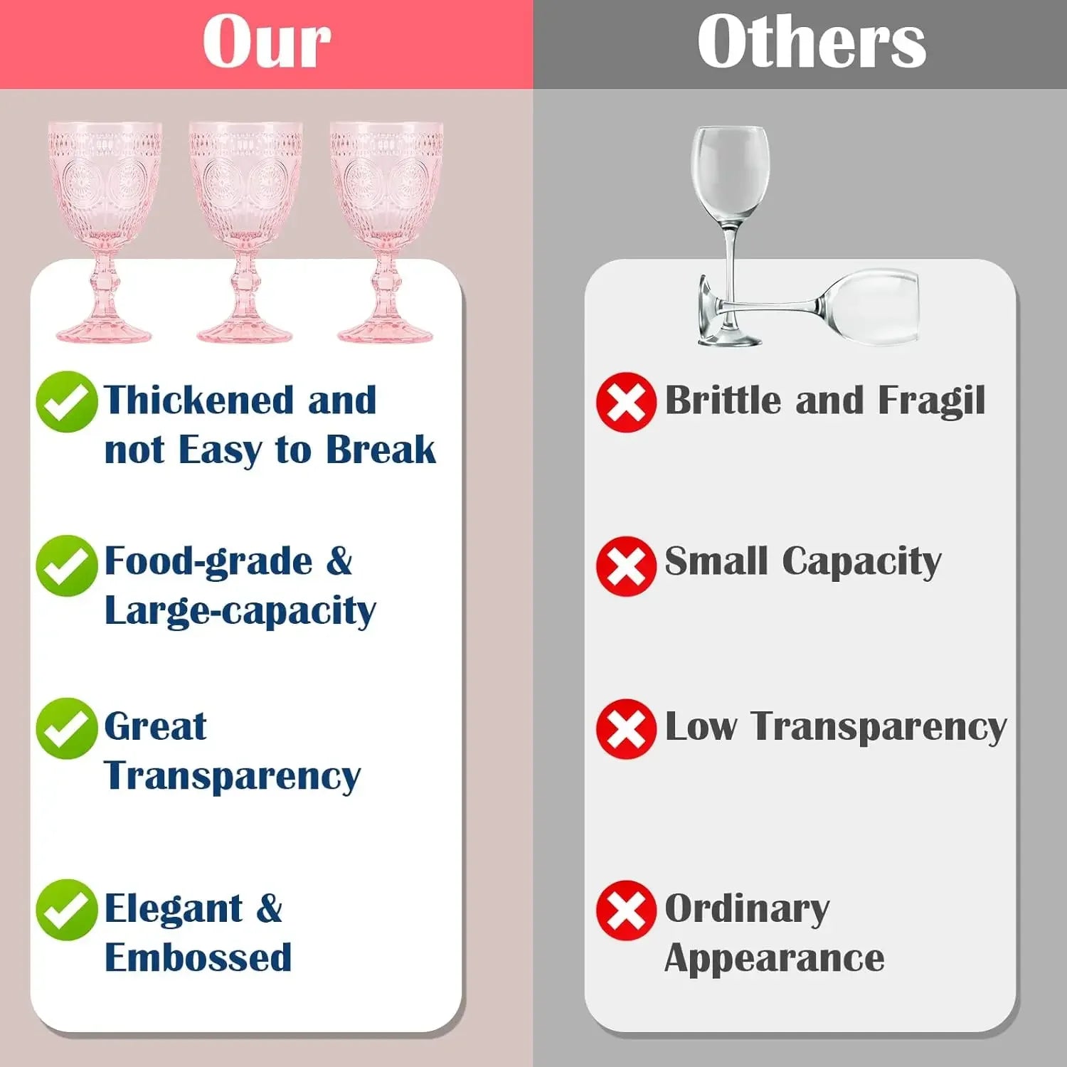- Embossed Design - Elegant vintage glass goblets, crystal clear, with embossed diamond pattern design